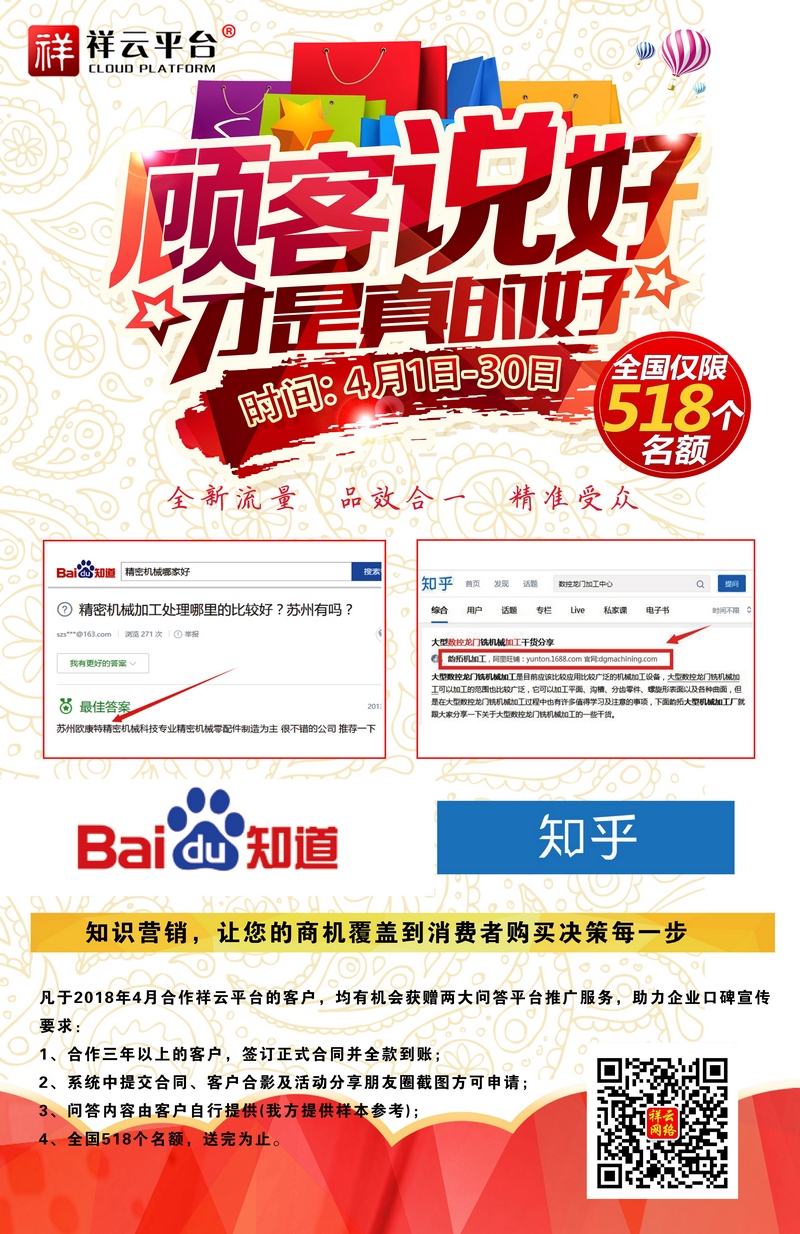 百度知道,知乎。全新流量,品效合一,精準(zhǔn)受眾,F(xiàn)在做祥云營(yíng)銷型網(wǎng)站,就送百度知道、知乎口碑營(yíng)銷! 截止日期:2018-4-28日